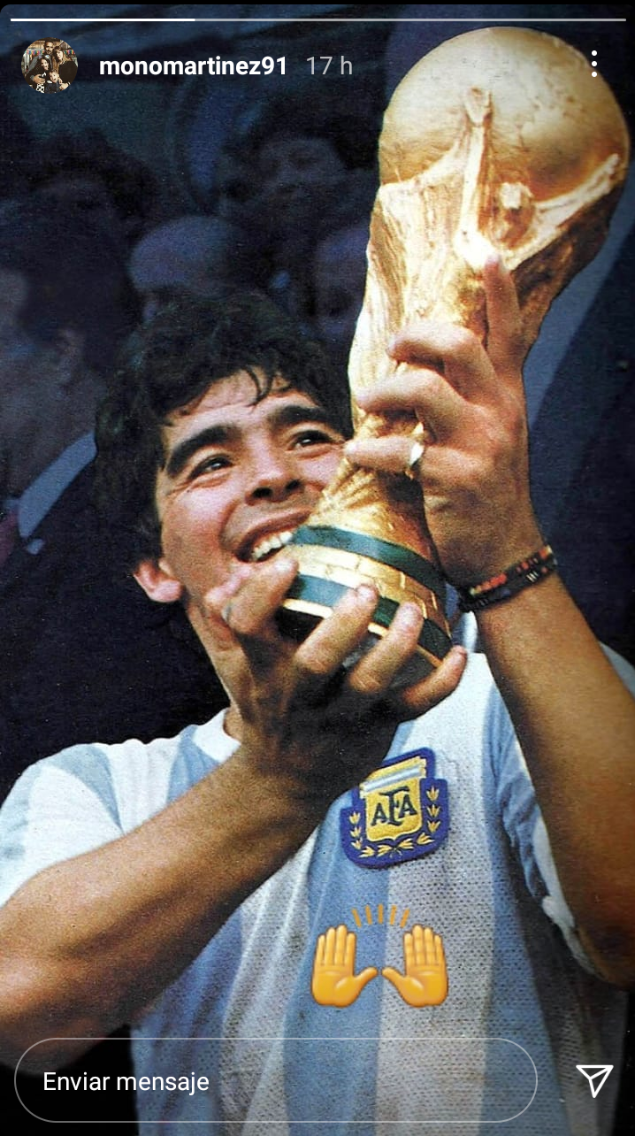 Lautaro Leguizamón, (@lautyleguizamon9), delantero, también hizo lo mismo y publicó una historia de Diego con la copa del mundo y una sonrisa, al igual que Ramiro Martínez (@monomartinez91), arquero, que siguió la misma línea de subir una historia con la foto de Diego conquistando el mundial el 86′.