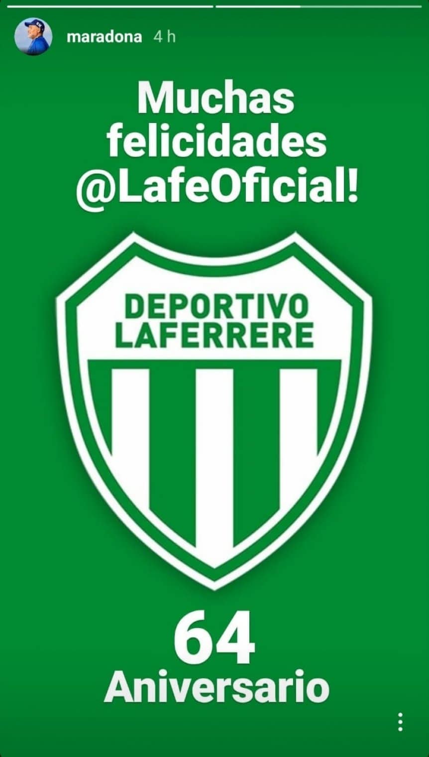 En varias oportunidades, Diego Maradona ha tenido varios gestos con Deportivo Laferrere que sus hinchas nunca olvidarán. Por ejemplo, cuando firmó camisetas del club para que sean subastadas. O la vez que visitó el Morumbí en un clásico contra Almirante Brown. y hasta saludó al Verde en su último cumpleaños.