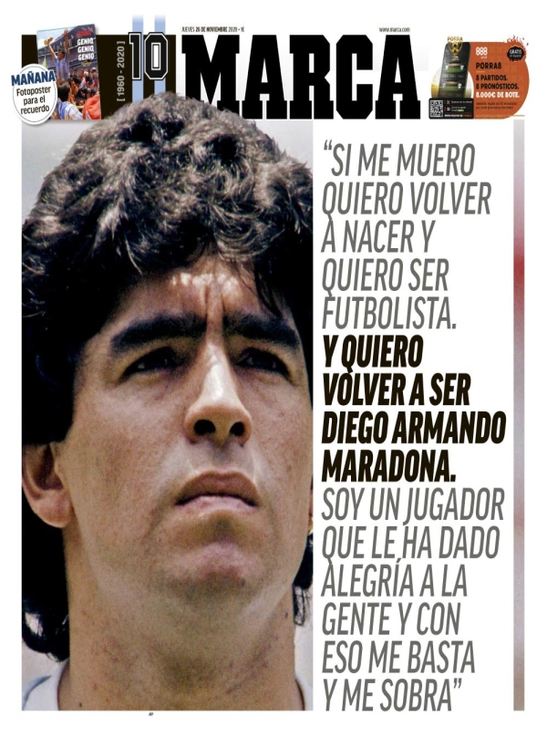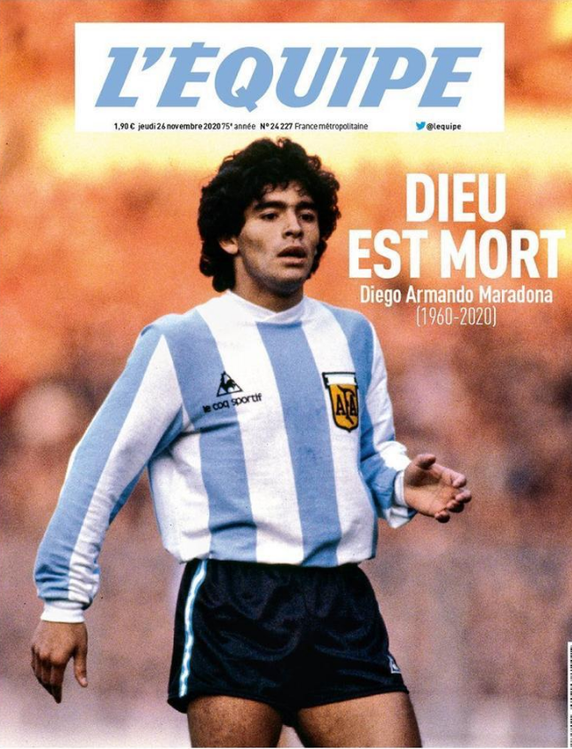 Las portadas de los diarios en todo el mundo reflejaron la noticia del pase a la inmortalidad de Diego.