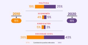El Equipo Latinoamericano de Justicia y Género (ELA) presentó durante el corriente año una investigación sobre quienes ocupan los puestos de mayor jerarquía en Argentina. El resultado fue que solo 2 de cada 10 puestos están ocupados por mujeres. El estudio “Sexo y Poder: ¿Quién manda en Argentina?” contrapone datos obtenidos en 2010 y 2020.