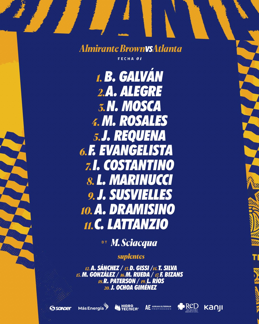 Pablo Adasme plasmó un esquema de 4-1-2-1-2 para tener un mediocampo poblado y con estos nombres; Gonzalo Dellaquila, Santiago Acosta, Claudio Verino y Nicolas Martinez fueron la defensa; Roque Ovejero, Nicolas Velazco y Damian Perez Roa fueron los líderes en la mitad de cancha; Mauro Abbruzzese, Gianfranco Ottaviani y Rafael Monti en la delantera.