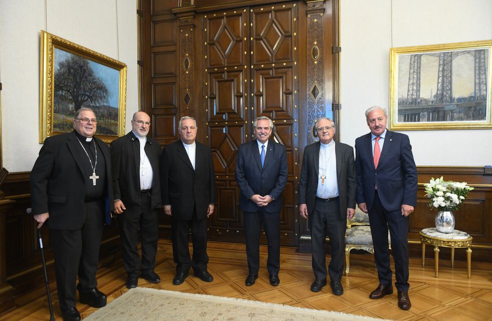 El presidente Alberto Fernández recibió este miércoles a la Comisión Ejecutiva de la Conferencia Episcopal Argentina, en el marco del tradicional saludo de Navidad. Las autoridades dialogaron sobre temas de la coyuntura nacional como la situación económica, la necesidad de trabajo formal, la pandemia de Coronavirus y el liderazgo mundial del Papa Francisco.