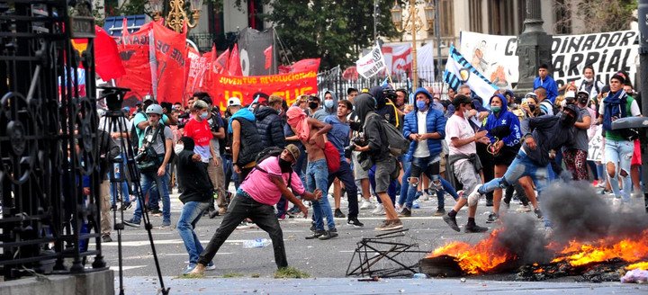 “Los daños producidos en el frente del edificio, el despacho de la presidenta del Senado de la Nación y el peligro al que fueran sometidas las personas que se encontraban en su interior, recién pudieron ser evitados a partir de las 15.21hs aproximadamente, cuando un cordón policial avanzó sobre la zona y dispersó al grupo de manifestantes que, incesantemente, tuvo por objetivo atentar directamente contra dicho sector del Congreso Nacional”, agrega la presentación realizada por la letrada en representación de la Presidencia de la Cámara alta. (Télam).