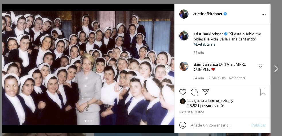Su mensaje de Instagram finalizó con una frase emotiva y contundente: “La razón de tu vida Evita, le dio eterno sentido a las nuestras”.