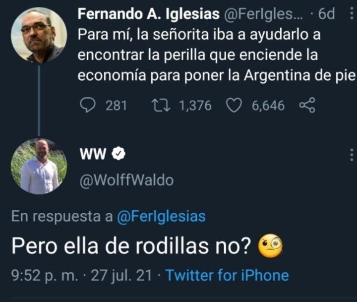 Wolff pidió disculpas por la situación y aclaró que su tuit no fue “contra ninguna persona”. “Hablo de que ‘vino a poner la economía de pie y la puso de rodillas’, si alguien entendió otra cosa”, argumentó al intentar defenderse. Luego se denunció a si mismo en la Justicia, para lo cual pidió que se investiguen los hechos.