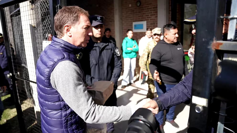 Durante la llegada a la mesa, se lo vio acompañado de su mujer y una bolsa de facturas que dejó para los fiscales y presidente de mesa. Ante la pregunta de los medios, sostuvo que dará unas palabras en el teatro del mismo colegio.