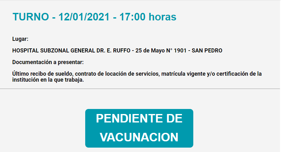 Podrá visualizar si está inscripto y en espera de recibir el turno, si ya se vacunó y espera recibir la segunda dosis o si ya tiene un turno asignado para la primera dosis.