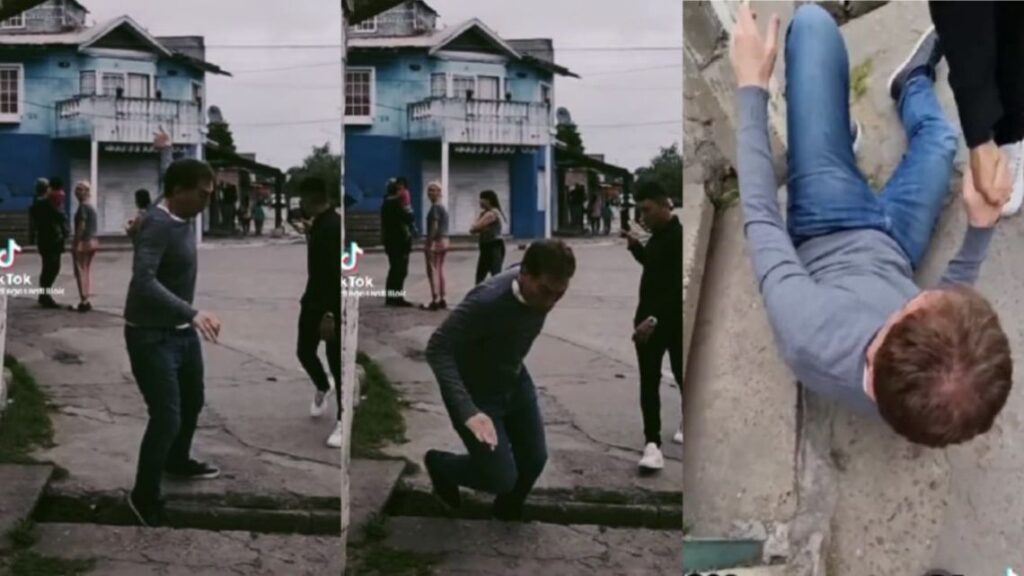 En un momento de distracción, sin darse cuenta metió el pie en un agujero y terminó dándose un golpazo. El momento fue grabado por su equipo y el video de TikTok no tardó en viralizarse.
