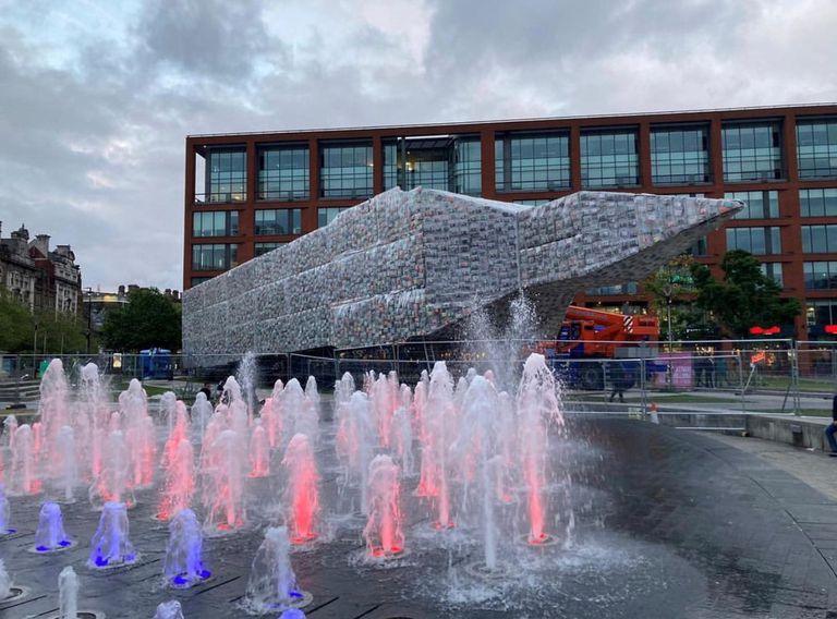 Minujín expuso, a través de una videollamada, su más reciente creación: la réplica del Big Ben acostado con 20 mil libros políticos. Esta es la última entrega de su serie “La caída de los mitos universales”: Big Ben Lying Down with Political Books habla de reimaginar símbolos naciones y de la unión de un mundo en torno a la democracia e igualdad. La exhibición estará desde el 1 de julio hasta el 18 en Piccadilly Gardens, en Mánchester.