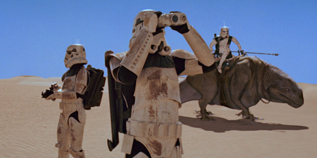 Luego tenemos otros, como la cantidad de criaturas CG en Mos Eisley, las cuales envejecieron horrible hoy y manchan un poco la belleza del filme. Y después hay algunos que solo te hacen preguntar ¿por qué? Como que una criatura en el compactador de basura pestañee.